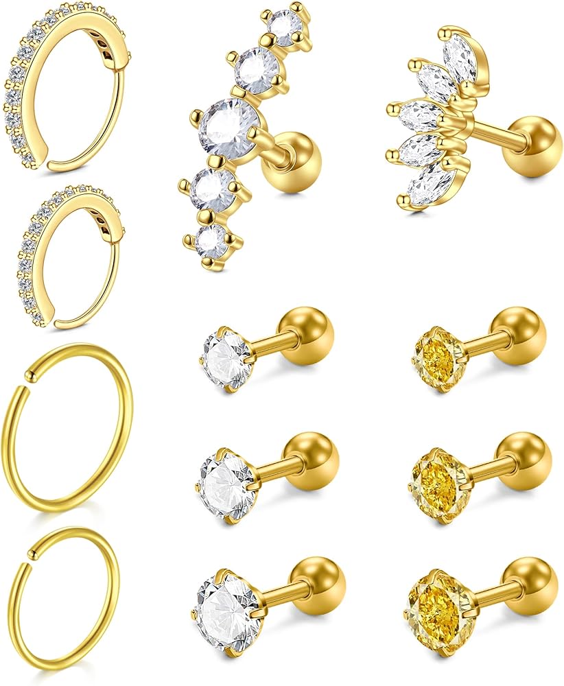 Amazon Com Incaton 12pcs 16g Stainless Steel Cartilage Cubic Zirconia Stud Earrings For Men Women Girls Conch Forward Helix Tragus Daith Piercing Jewelry Clothing Shoes Jewelry